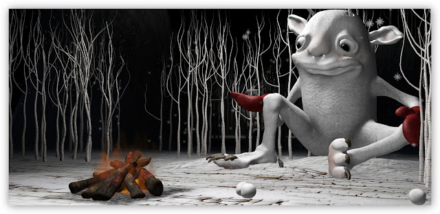 In typischer Cica Manier hat sie hier eine Winterlandschaft erstellt. Kahle dünne Äste ragen in den Nachthimmel. Mittig findet man ein Lagerfeuer (das ab und an ausgeht) um denen riesige Fantasie Wesen mit dem typisch beweglichen Augen sitzen, um sich aufzuwärmen, eins davon trägt sogar dicke rote Handschuhe. Dort gibt es einige Schneekugeln, die sich auch bewegen, wenn man an sie stößt und sie verdoppeln sich. Diese Schneekugeln findet man auch an anderen Stellen.